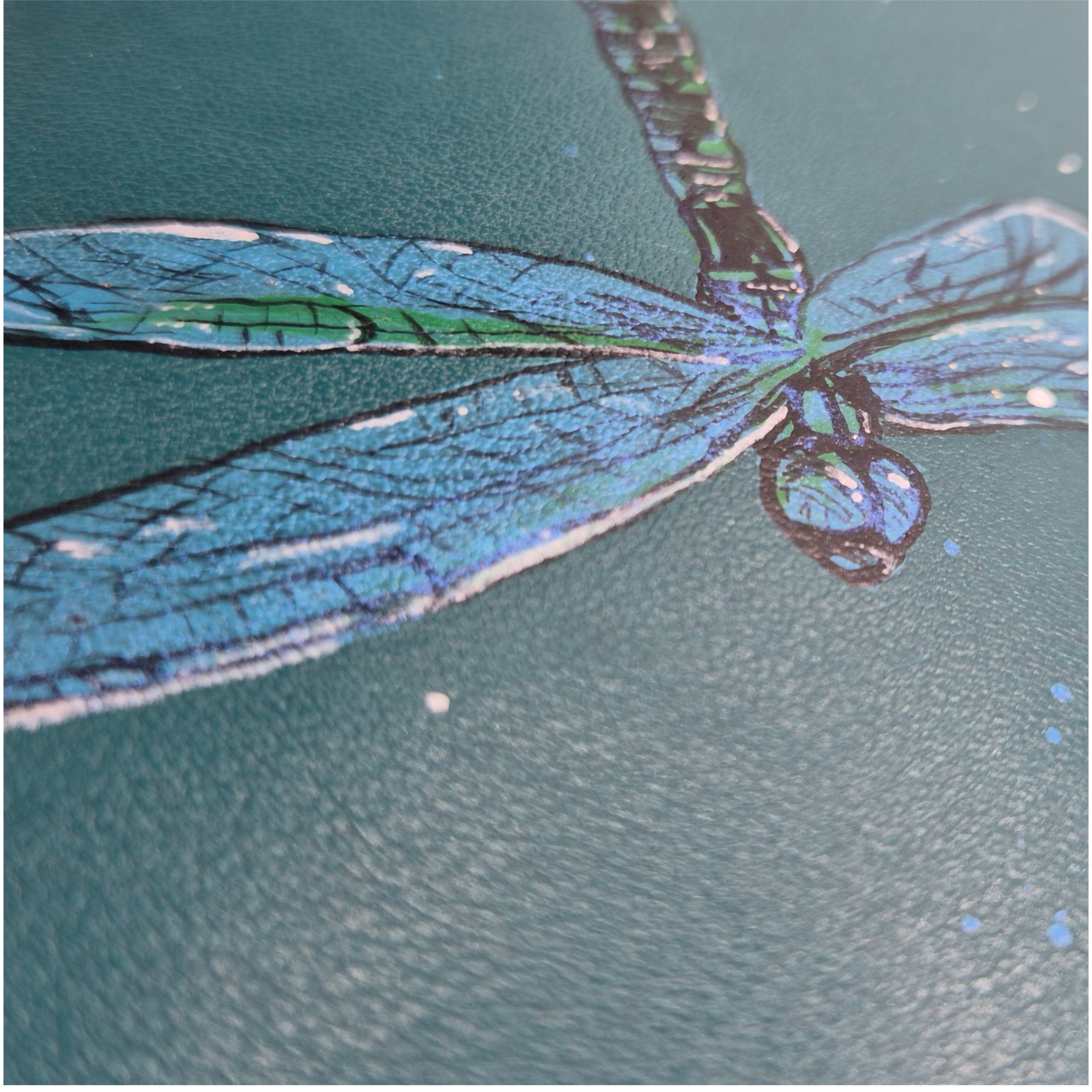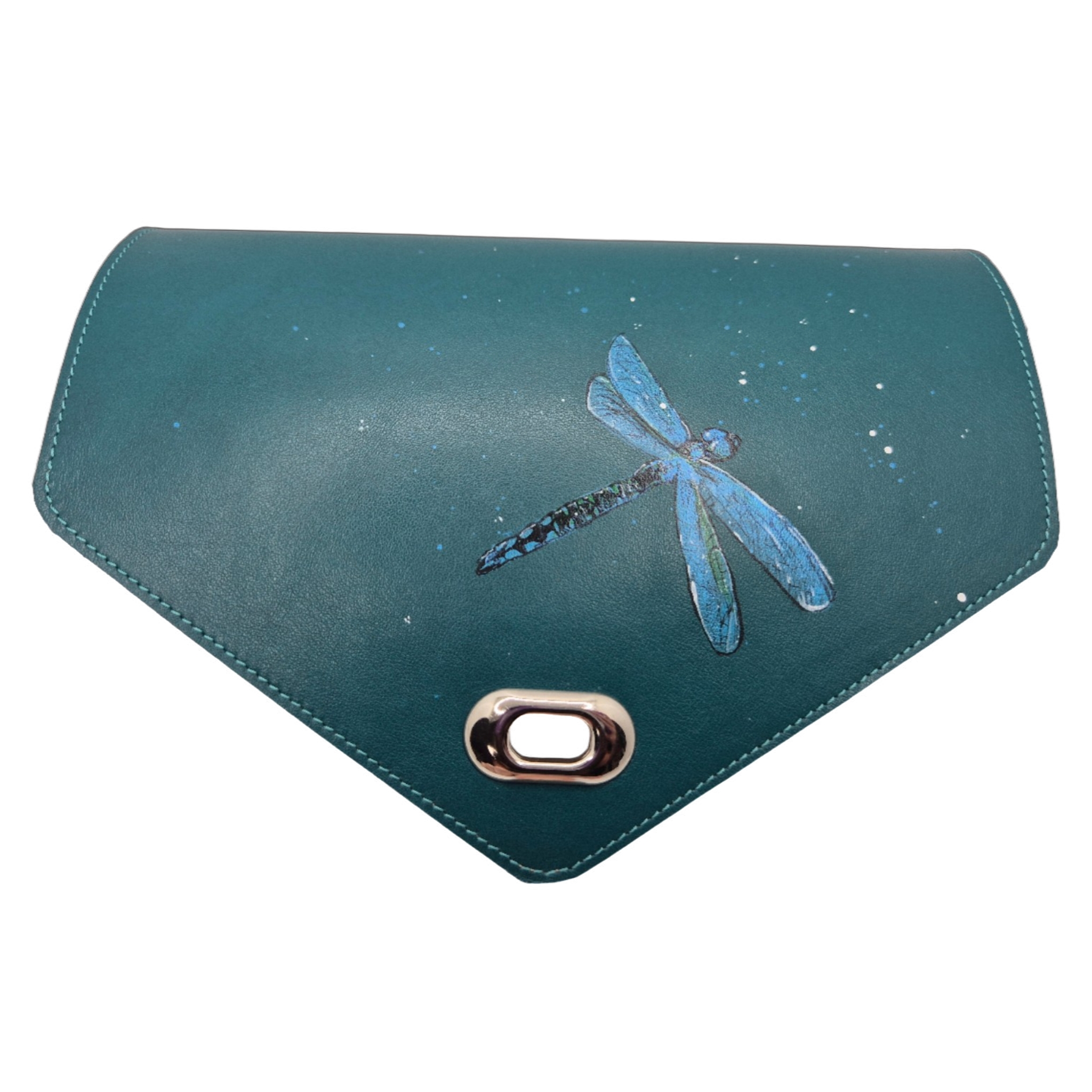 Klep passend op alle Swapflaps tassen in turquoise leer met libelle. Iriserende finish op de vleugels
