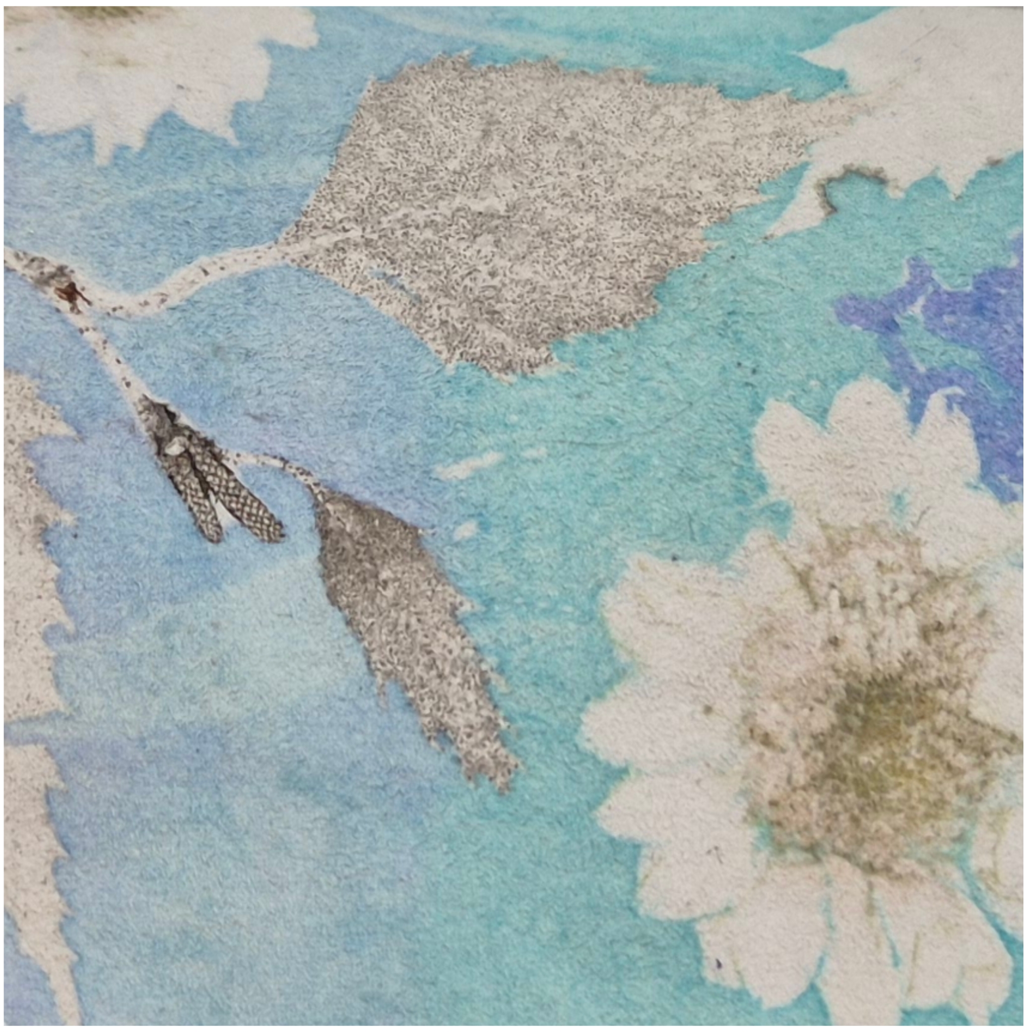 Door planten en bloemen op het leer te leggen en te stomen zijn met behulp van ecoprint-technieken de pigmenten uit de plant op leer te drukken. De achtergrond wordt geverfd met zijdeverf. Iedere ecoprint-klep is hierdoor uniek! Op deze klep zie je o.a. berk en margrieten afgedrukt. Het leer van deze ecoprint swapflap heeft wat losse vezels, waardoor het leer “los” op de klep lijkt te liggen. Daarom in de sale!