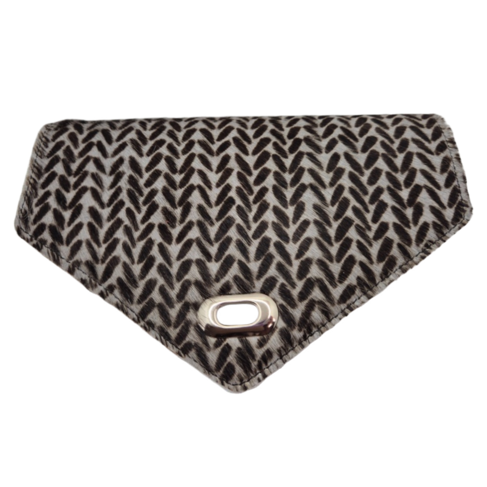 Klep passend op de swapflaps tassen in aaibaar leer met een vachtje en “gebreide”print