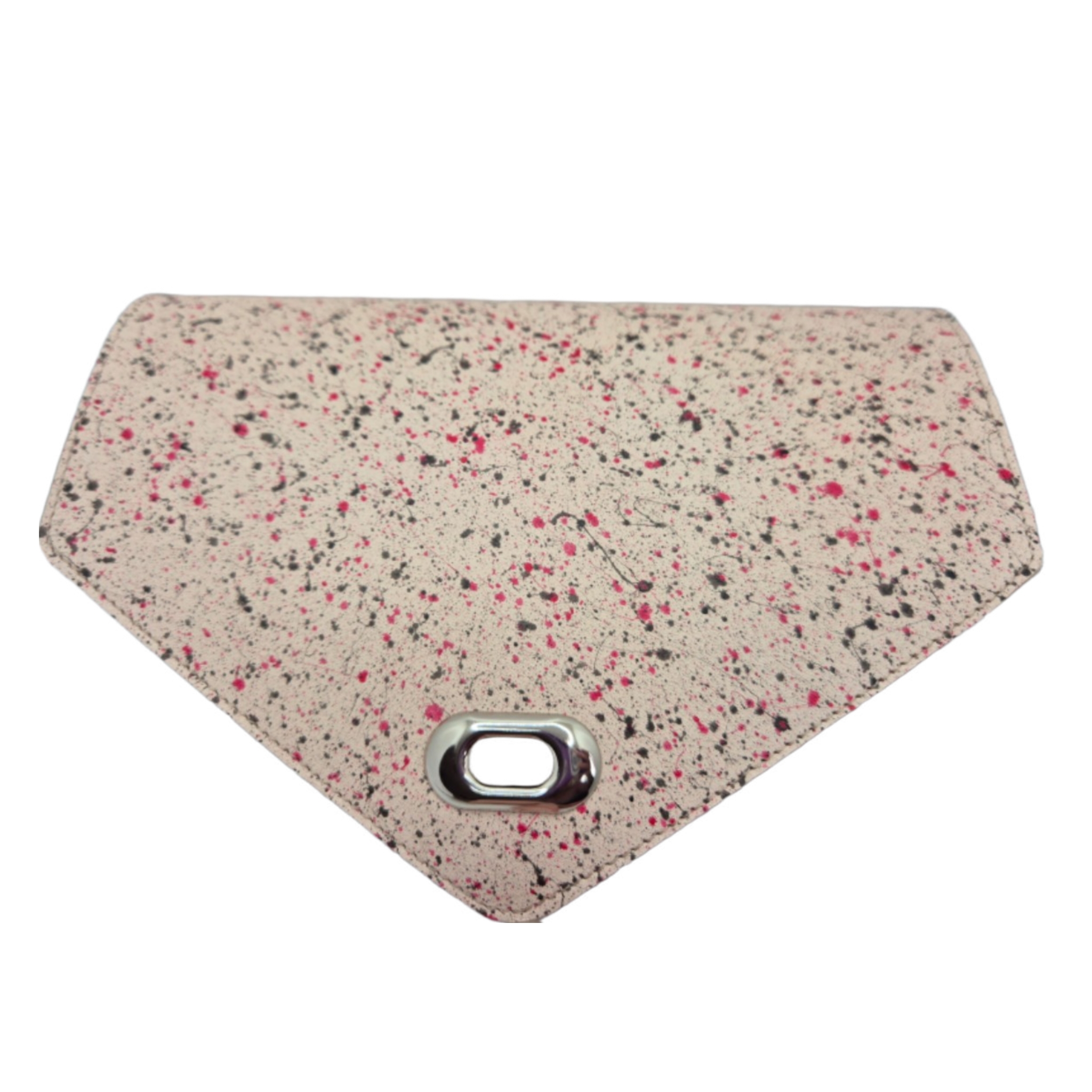 Klep passend op de swapflaps tassen in naturelkleurig leer met zwarte en rood/roze verfspetters