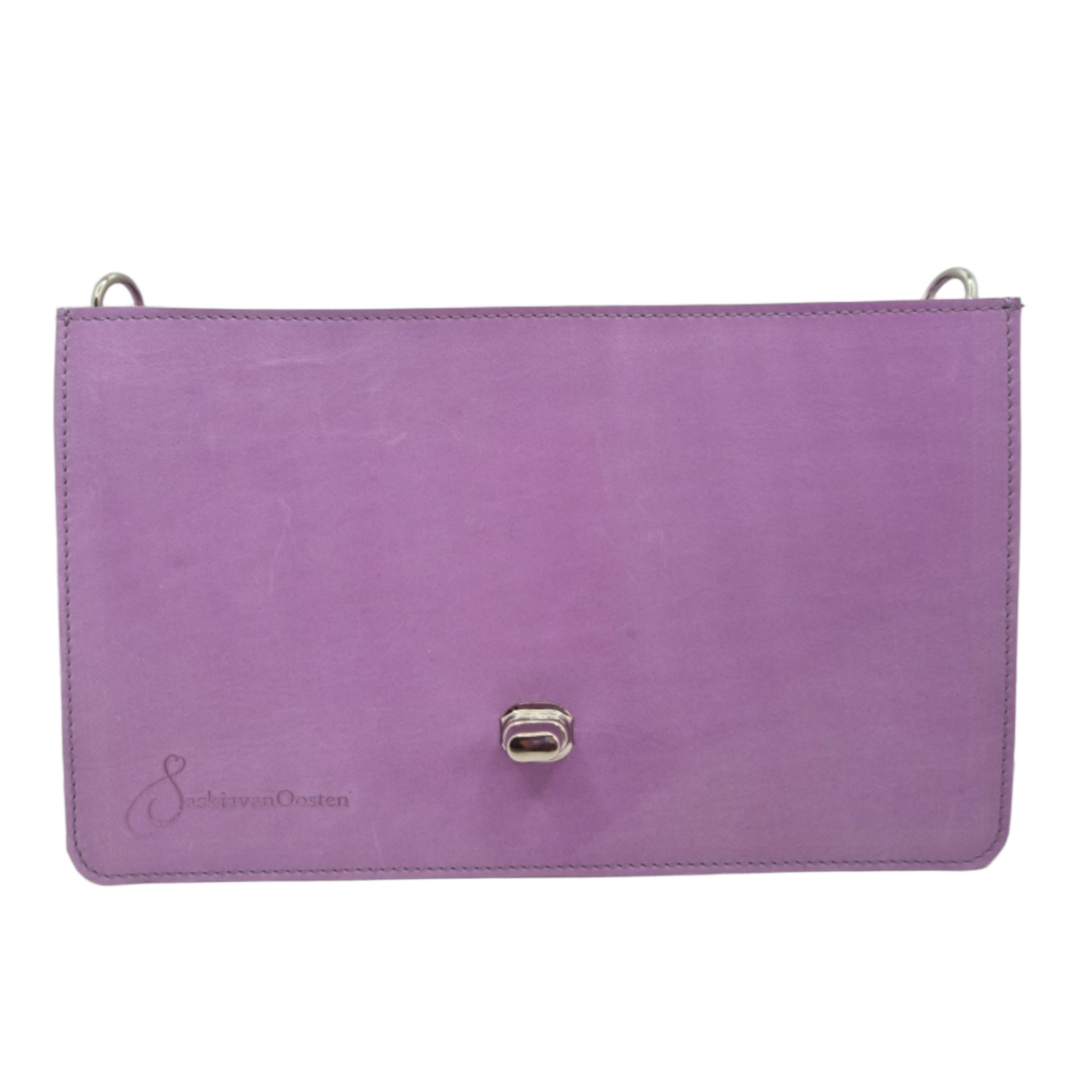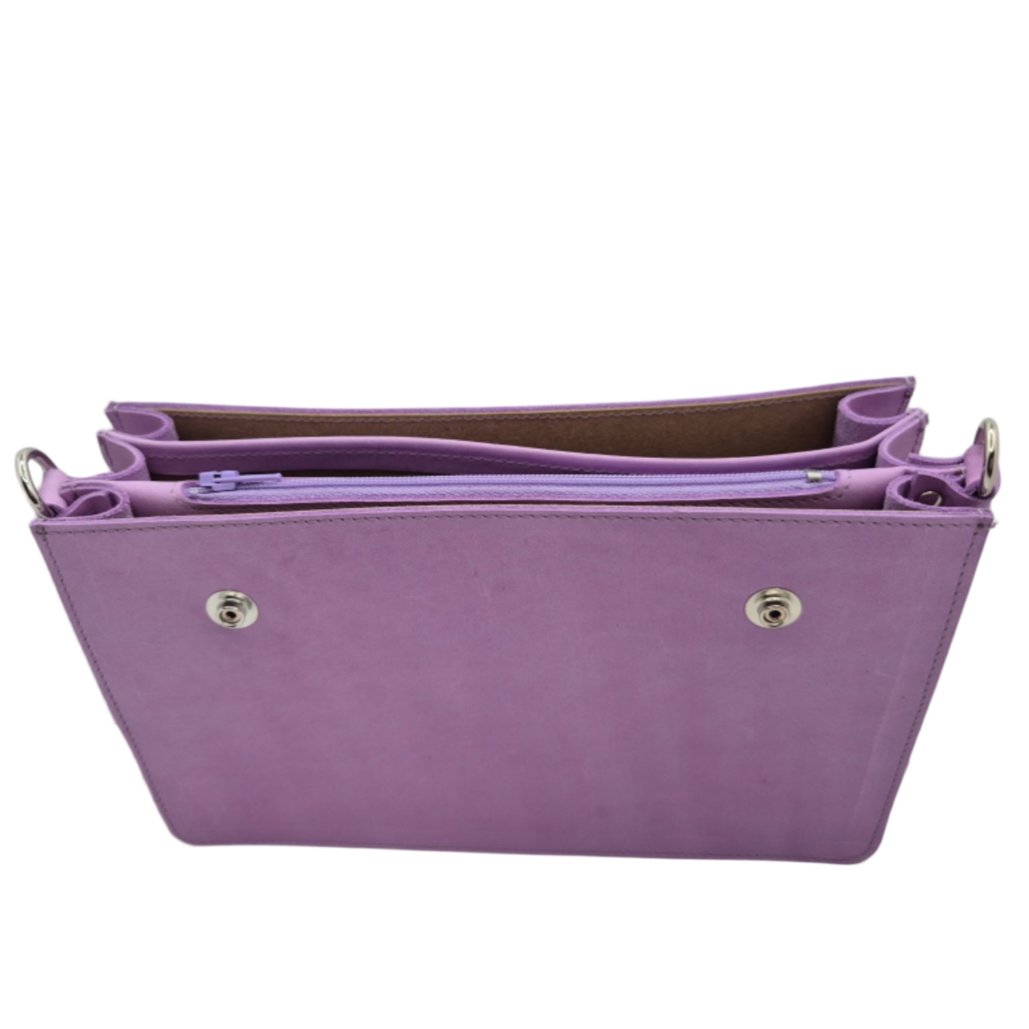 swapflaps body in geschuurd lila leer. Let op, dit type leer is gevoeliger voor verkleuring en beschadigingen.